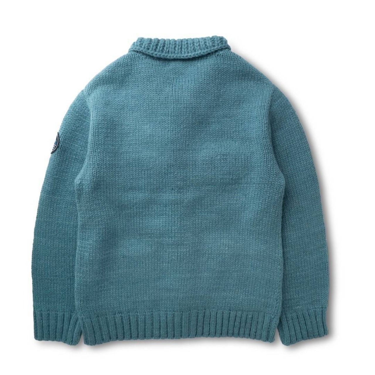 このカバ-オ-ル風のカ-ディガンは、熟練した職人たちが手編みの技術を駆使して作られています。衿の形やパッチポケットの再現性も絶妙です。フロントのボタンは水牛の角から削り出した天然の素材を採用しているので、落ち着きがあります。