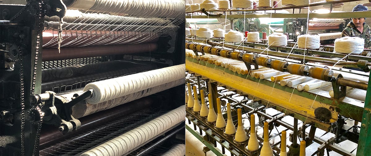 現地にて紡績、染色を行い原料から全て現地職人が携わります。