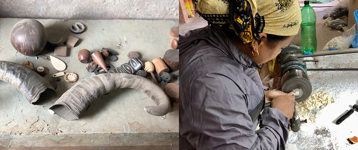 Because much of the horn is hollow inside, only a few 30mm-diameter buttons can be made from a single horn.